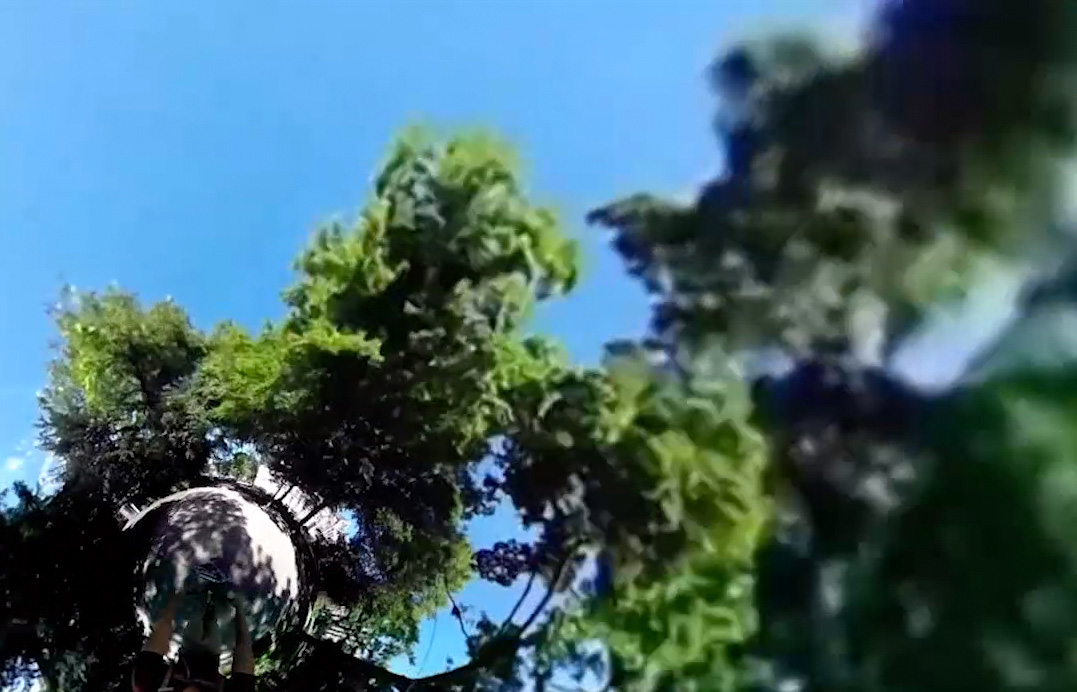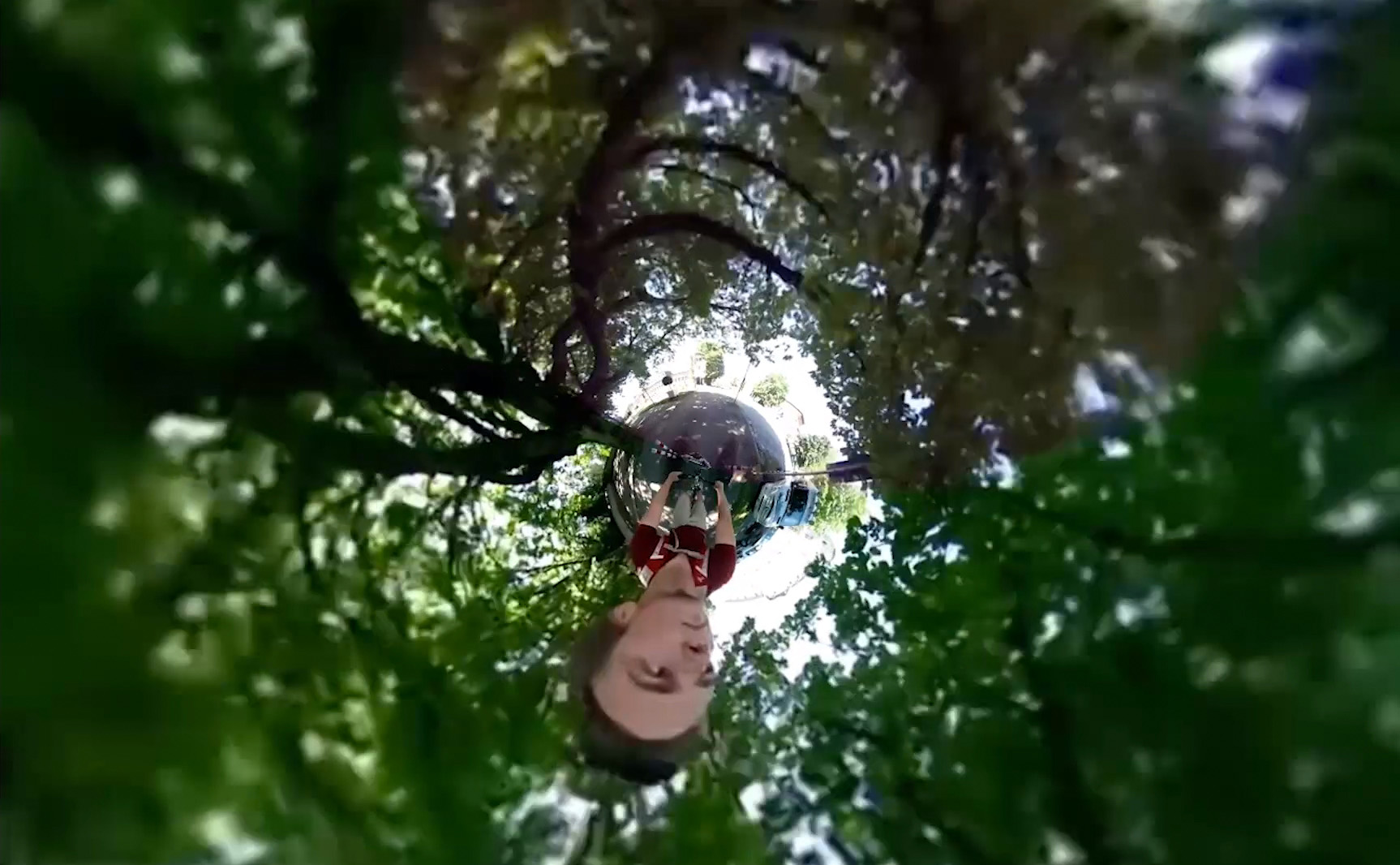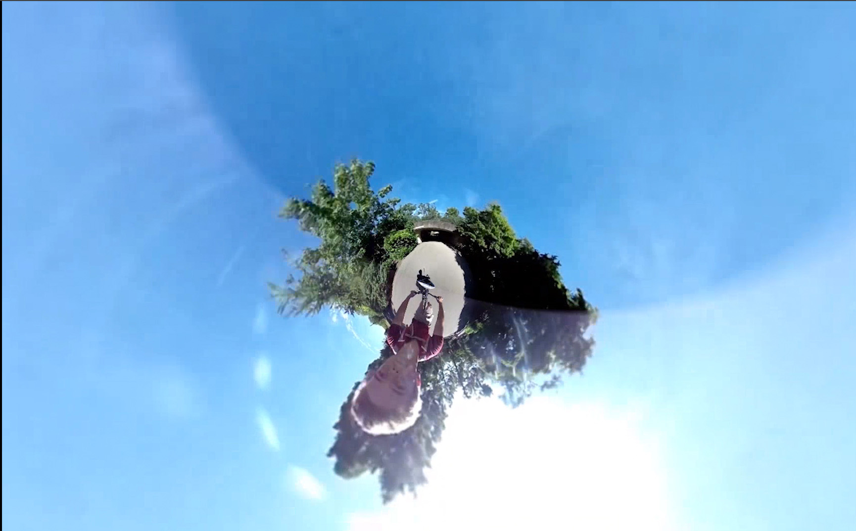 Patrick Kruse durchfährt mit seinem Fahrrad den Hofgarten in unterschiedlichen Richtungen, dabei nimmt er mit einer 360 Grad Kamera die gesamte Umgebung auf.