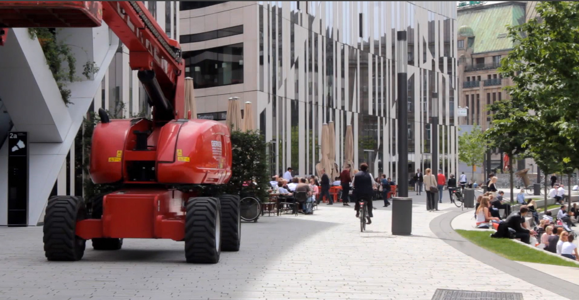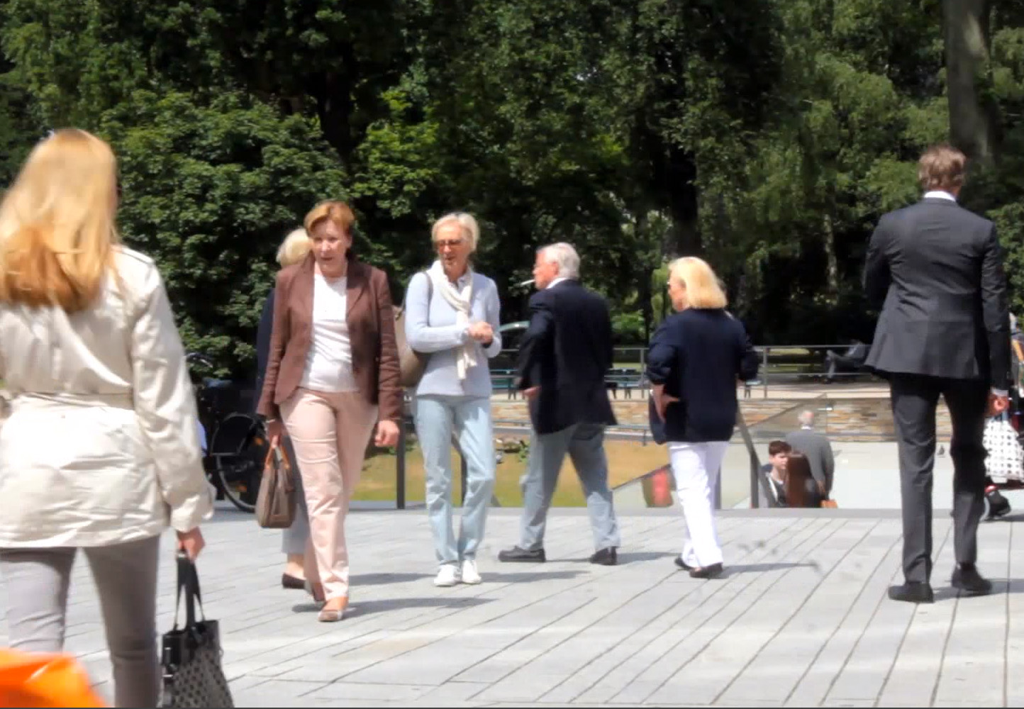 Vida Rhenani inszeniert den städtischen Raum um den Kö Bogen neu, indem sie die dort beobachteten Personen und Fahrzeuge zu unterschiedlicher Musik im Zeitraffer bewegen lässt. Zwischendurch verändert sie die Geschwindigkeit und gibt dem Moment - den persönlichen Blicken - die Aufmerksamkeit zurück.